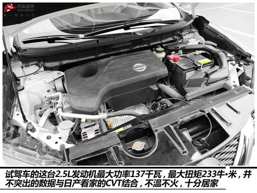 試駕車的這臺2.5L發動機最大功率137千瓦,最大扭矩233牛·米,并不突出的數據與日產看家的CVT結合,整體表現就像標題那樣,不溫不火,十分居家。