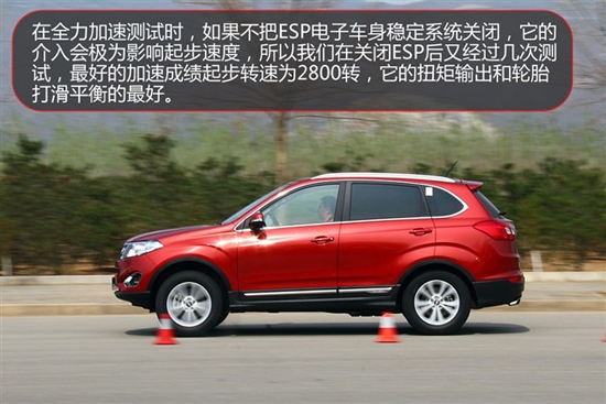 瑞虎5 2.0L的5速手動(dòng)最快的0-100km/h加速時(shí)間為13.09秒,為了保證最大扭矩的持續(xù)而有力的輸出,升擋時(shí)機(jī)定在6500轉(zhuǎn),保證升擋后發(fā)動(dòng)機(jī)仍在4500轉(zhuǎn)最大扭矩轉(zhuǎn)速之上,完全利用變速箱的齒比關(guān)系全力提速,但我們的測(cè)試車(chē)輛入3擋時(shí)有些生澀(不是普遍現(xiàn)象),導(dǎo)致入擋時(shí)間略慢,試過(guò)幾次后,13.09秒已是最好成績(jī)。