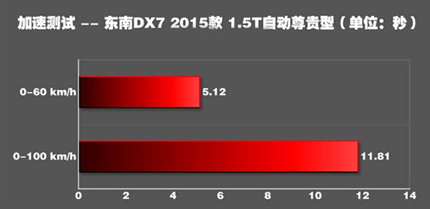 出于對自動變速箱的保護,東南DX7的最大起步轉速被限制在2300rpm左右,但是如果以這個轉速起步,它總是要花上一些“思考人生”的時間,然后再起步出發,因此加速肯定不是最快的,在這種情況下實測其0-100km/h的加速時間一般都會在12.3秒以外。