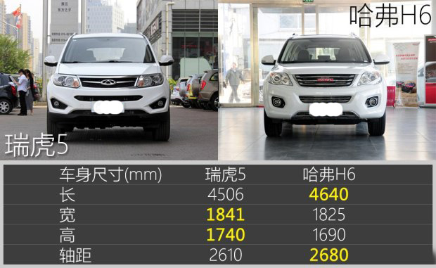 雖然“老車型”久經沙場,但哈弗H6依然在車身尺寸方面有一定優勢,車身長度和軸距方面都明顯優于瑞虎5。這也為兩車的乘坐空間差異埋下伏筆。