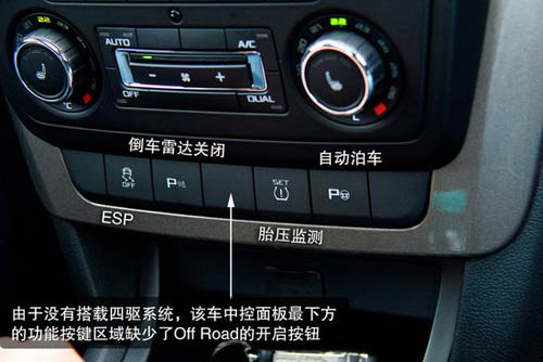 由于沒有搭載四驅系統,該車中控面板最下方的功能按鍵區域缺少了Off Road的開啟按鈕,而在該區域的最右側,我們看到了自動泊車的功能按鍵。海外版新款Yeti搭載的是PLA 2.0自動泊車系統,該系統在原有的側方位停車的基礎上增加了垂直停車功能,讓駕駛者停車更便捷。