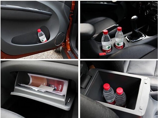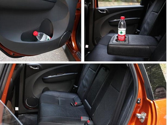 前排儲物空間很多:車門在放置1瓶礦泉水基礎上還能放下錢包等物品,手剎后面和中央儲物箱里面都可以完全放下2瓶礦泉水,眾多小物品都能找到合適的放置空間。